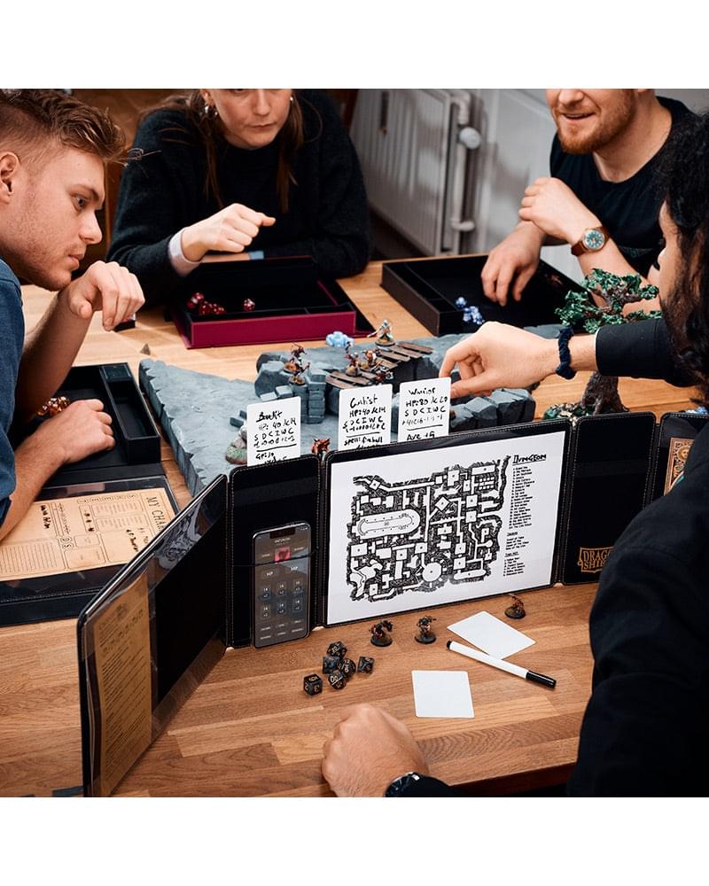 The GM screen features an integrated initiative tracker, pockets for notes and bands for phones & pens. Level up your RPG experience!